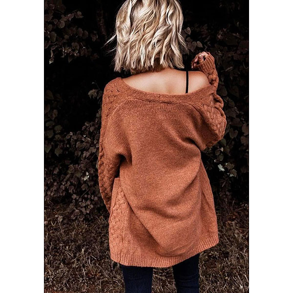 This pumpkin colored long-sleeved cardigan will look great while sipping your pumpkin spice coffee this Fall! Not only is it super comfy, it also has pockets!